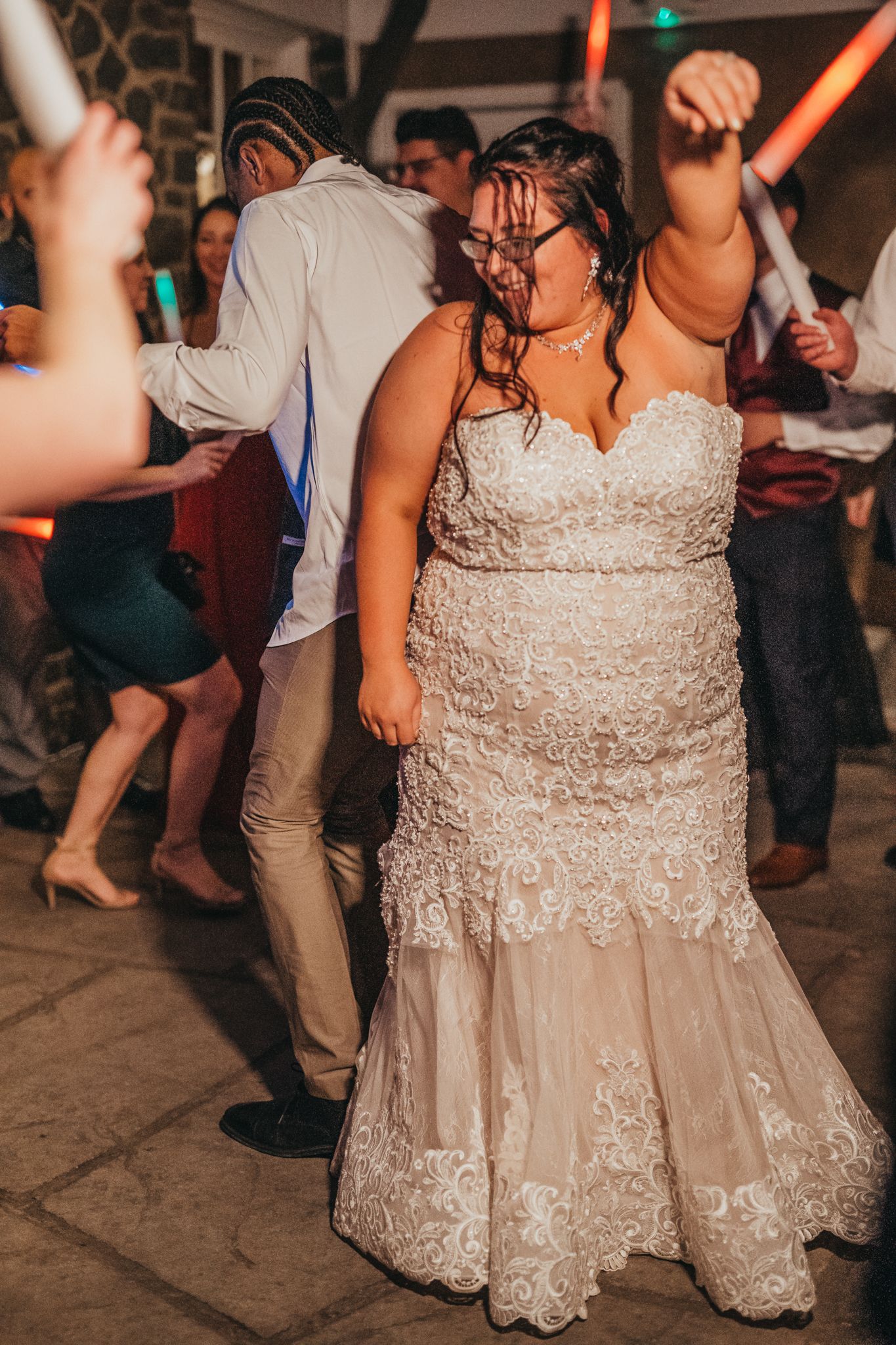 While her dress shopping experience was truly unforgettable, Leanne says the most memorable part of her wedding was “Just being able to dance on the dance floor with all my family and friends, with our foam glow sticks and our favorite songs blasting.”