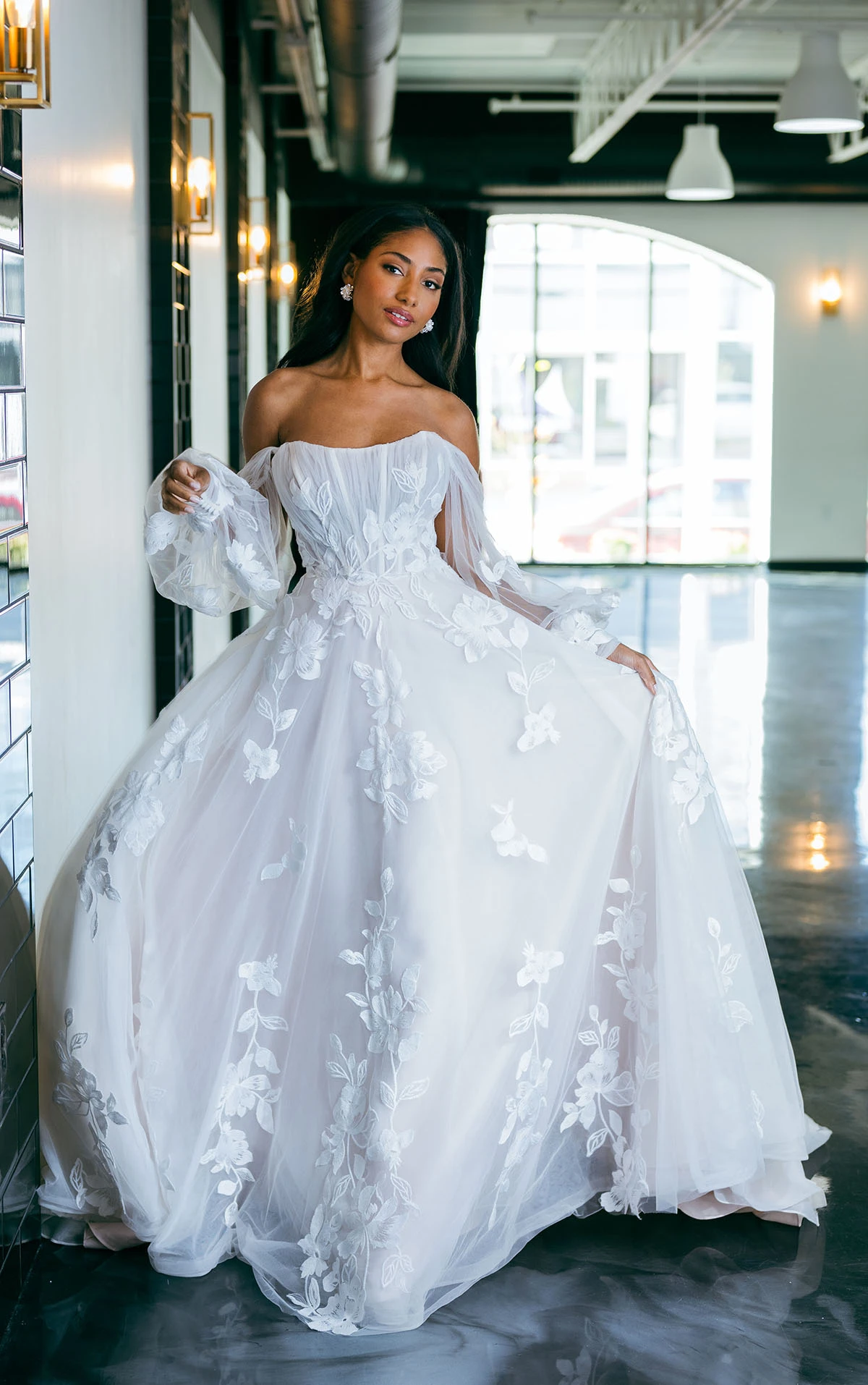 Please note gown inventory constantly changes, and we cannot guarantee all gowns seen here will be available at the time of your appointment.
